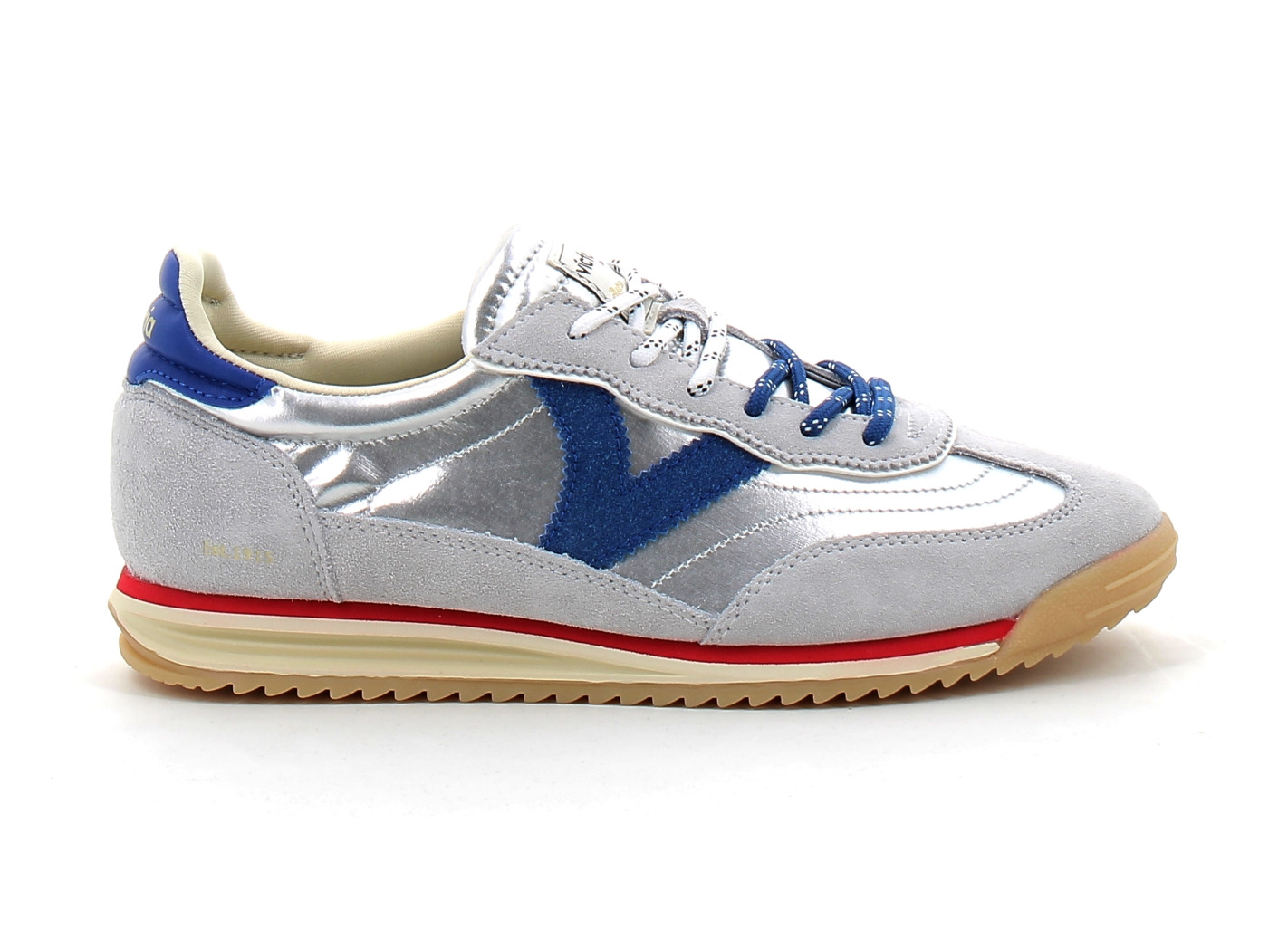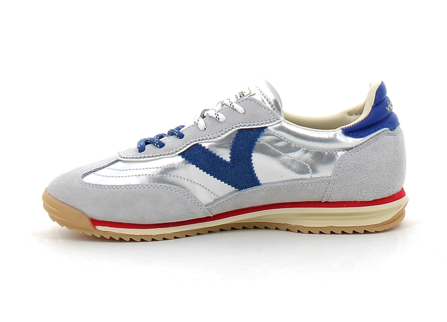 Basket de style rétro colorblock, la Saturno Rosa de Victoria séduit par son caractère affirmé et sa palette de tons roses et rouges. Son nylon métallisé capte la lumière avec subtilité, tandis que les empiècements en daim apportent du relief et du caractère à la silhouette.