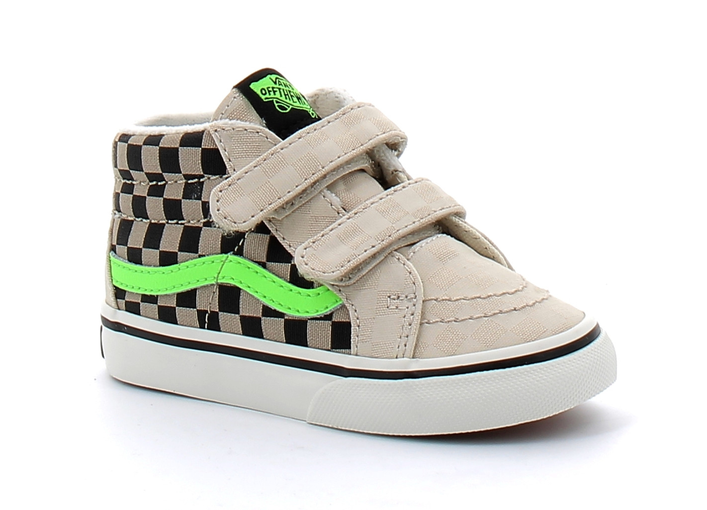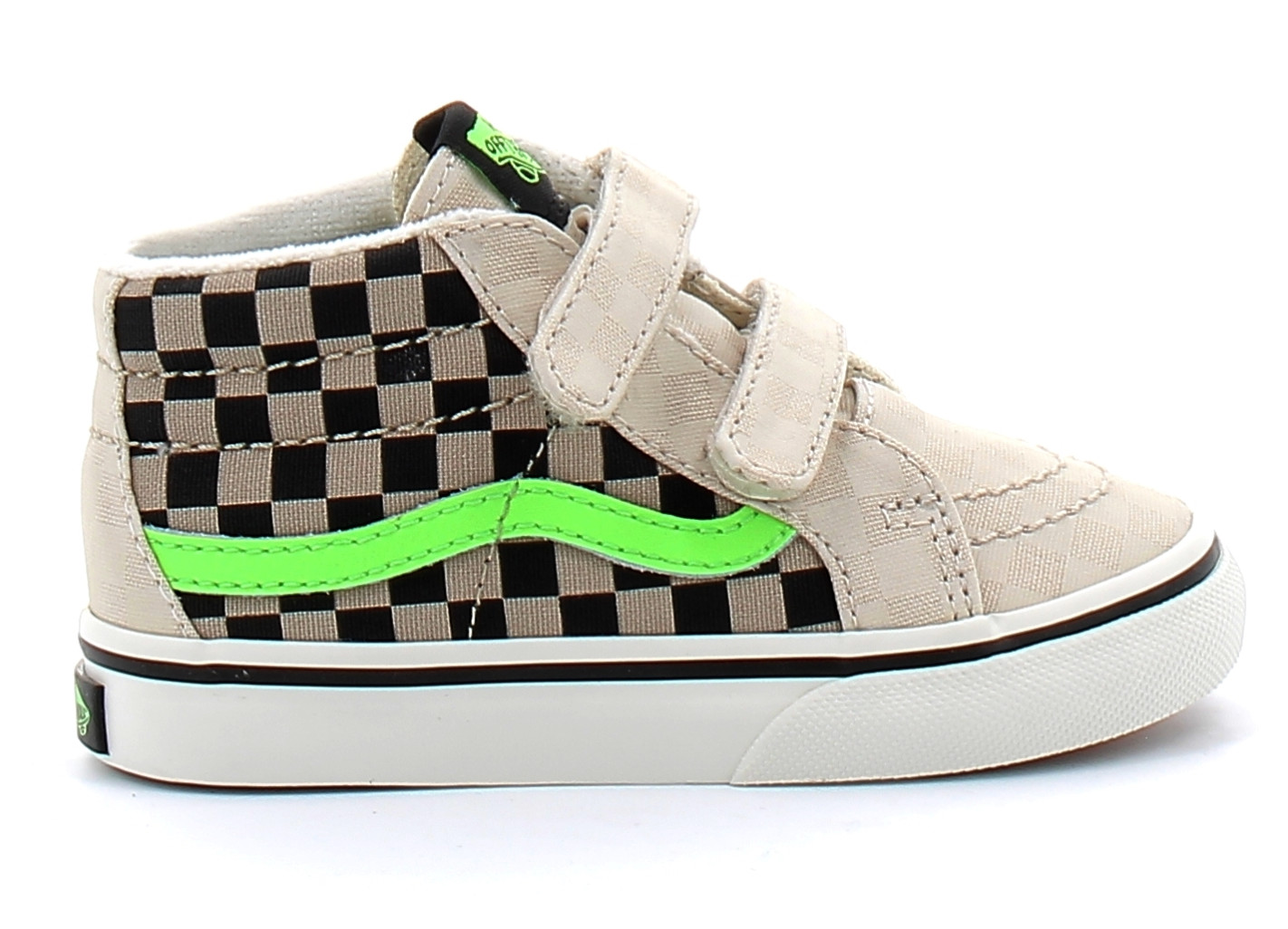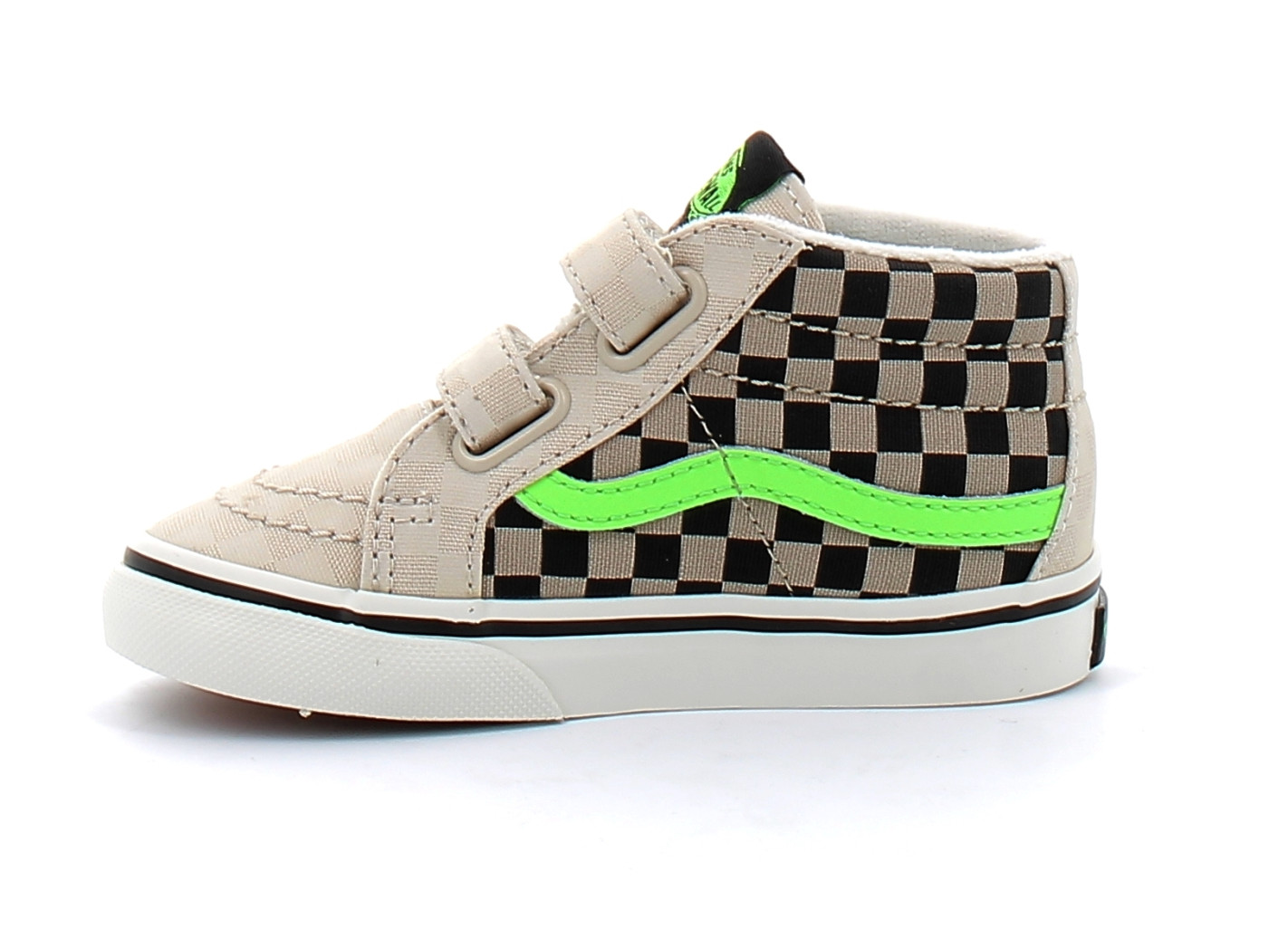 Les SK8 MID V Gum Green de la marque Californienne VAN’S pour enfant tirent leurs inspirations du célèbre modèle à tige mi-haute revu avec des lanières qui facilitent le chaussage Inspiré par le légendaire soulier à tige haute de Vans.