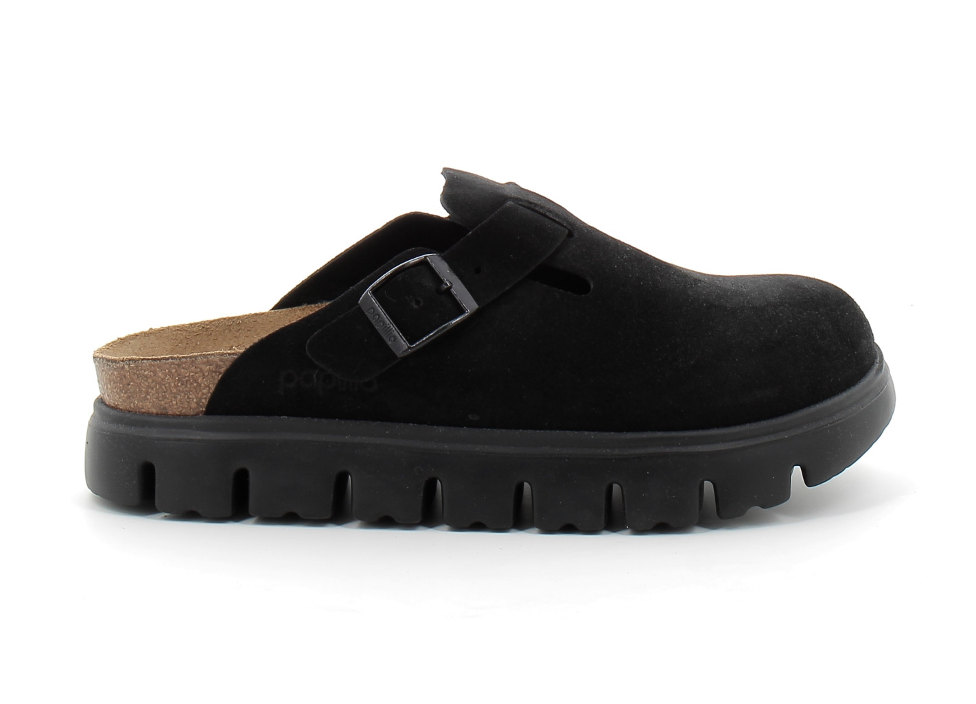 Grand classique BIRKENSTOCK, le sabot Boston se porte en toute saison. Papillio pare ici le sabot d'une semelle compensée tendance aux lignes très profilées. Le bout biseauté assure un confort maximal durant la marche. Sa tige a été confectionnée dans un cuir velours particulièrement doux qui drape le pied comme une seconde peau.