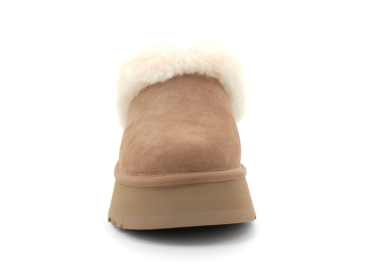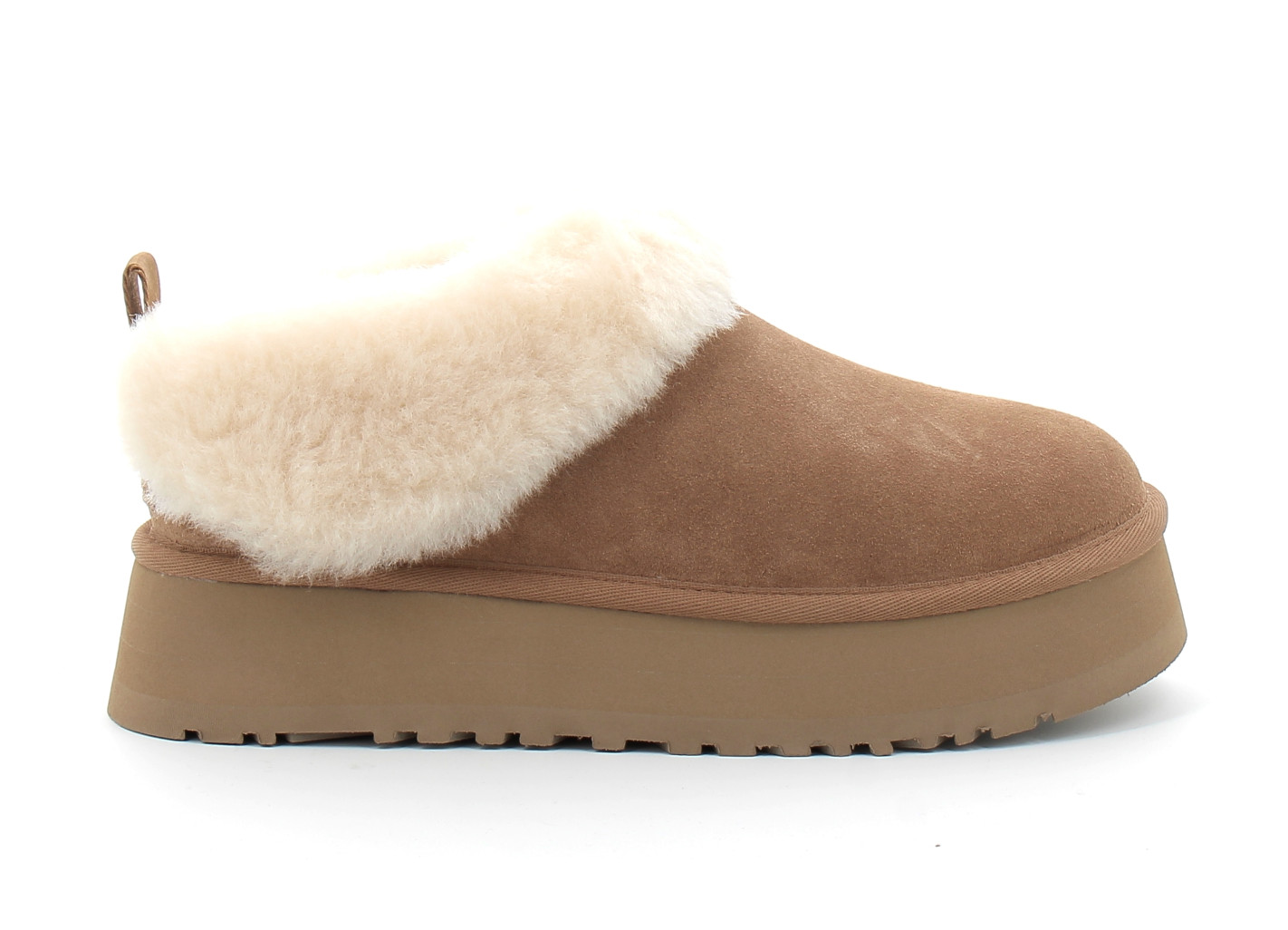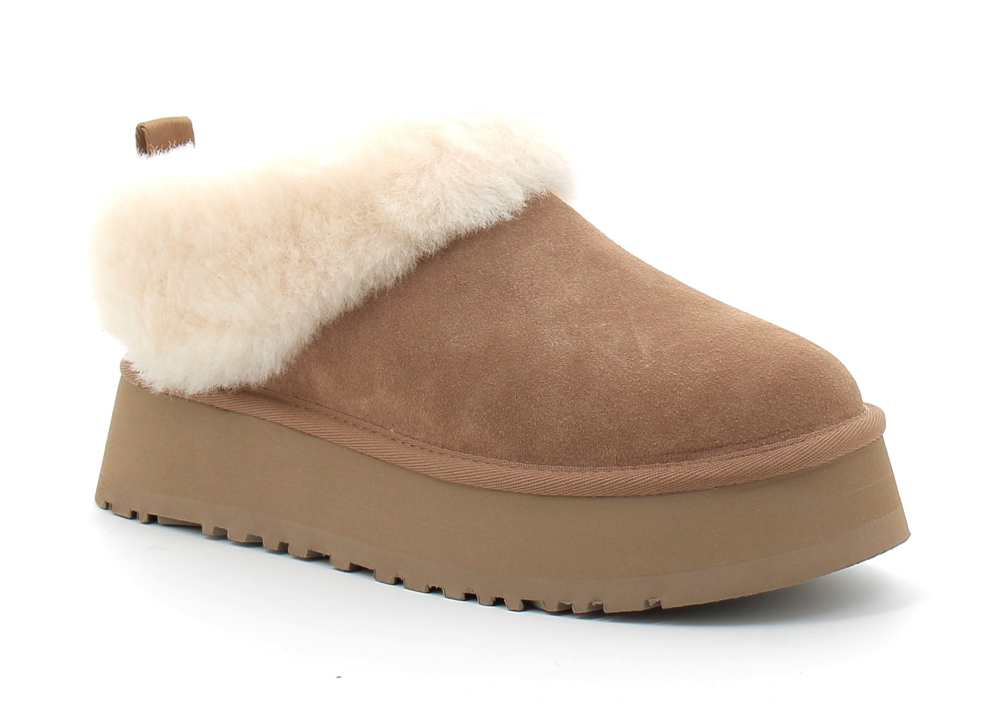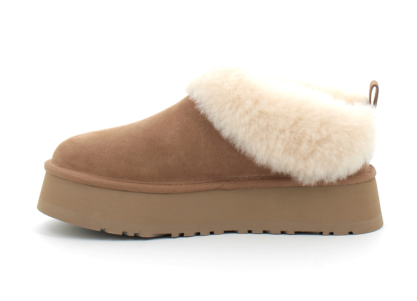 Vous adorez le chausson Tazz, mais vous avez envie d’encore plus de confort UGG® ? Le modèle Tazzelle est fait pour vous. Très confortable, ce chausson d’intérieur-extérieur séduit par son daim authentique et sa plateforme légère et dynamique de 4,4 cm confectionnée en EVA issu de la canne à sucre. Grâce à la peau de mouton qui orne l’intérieur et le revers fixe confortable, ce modèle peut être porté avec ou sans chaussettes.