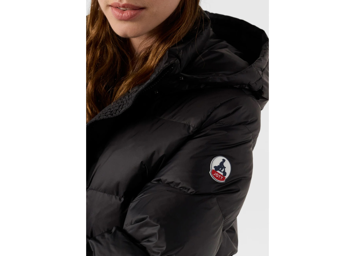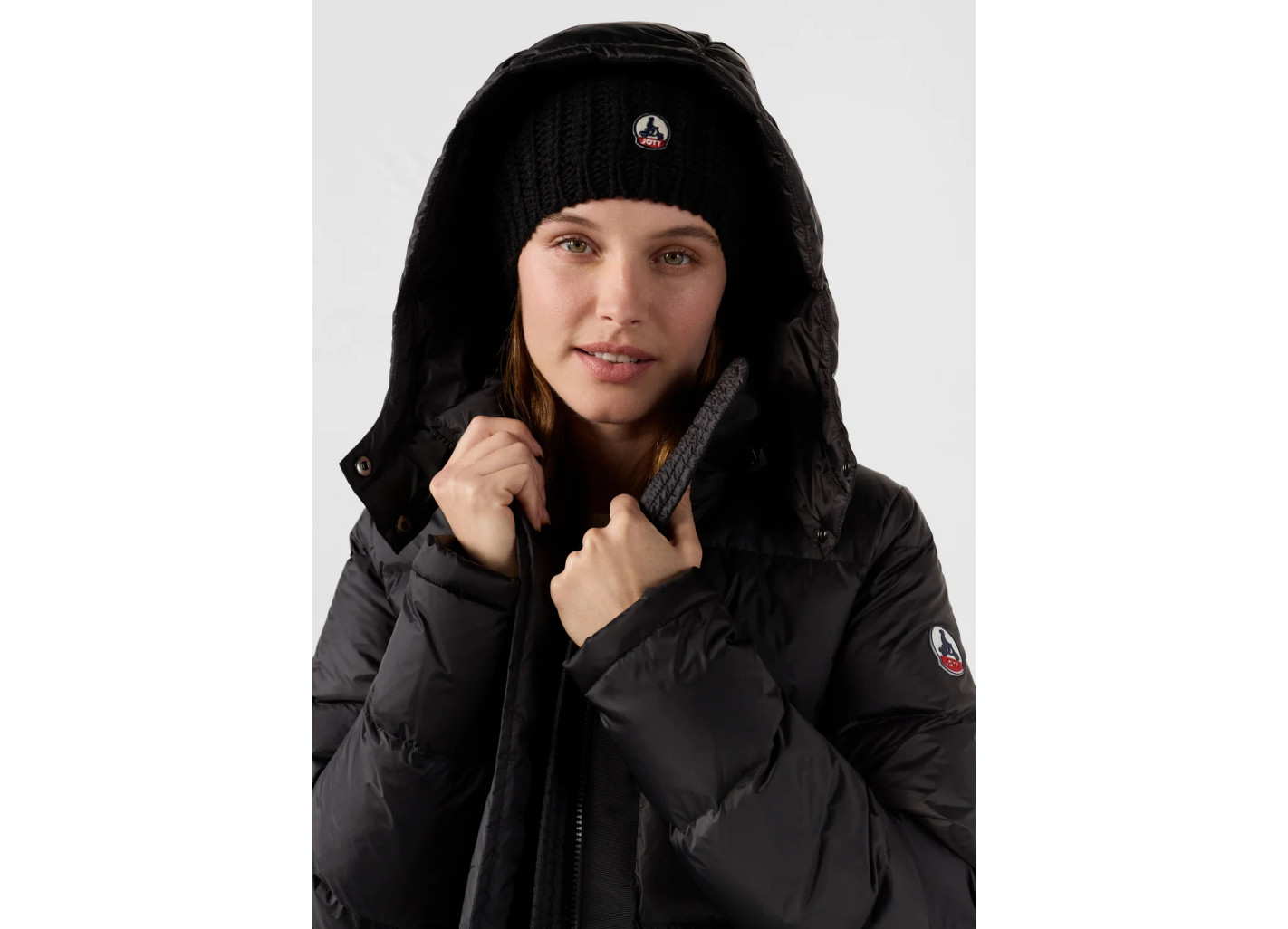 KARACHI est le best-seller extravagant du vestiaire JOTT ! Une doudoune à la ligne originale pour une entrée remarquée dans l’hiver : ultra longue, ultra chaude, dotée de fentes à pressions sur les côtés pour un porter confortable, d’une patte aimantée rabattable d’un geste et d’une large capuche amovible bien couvrante et ajustable au col par pressions. Son matelassage au piquage large accentue encore son allure contemporaine.