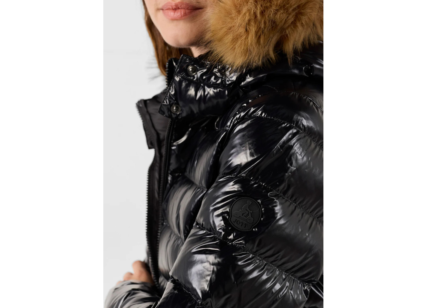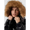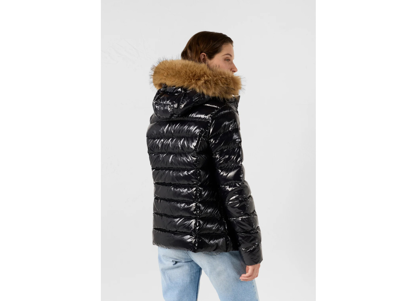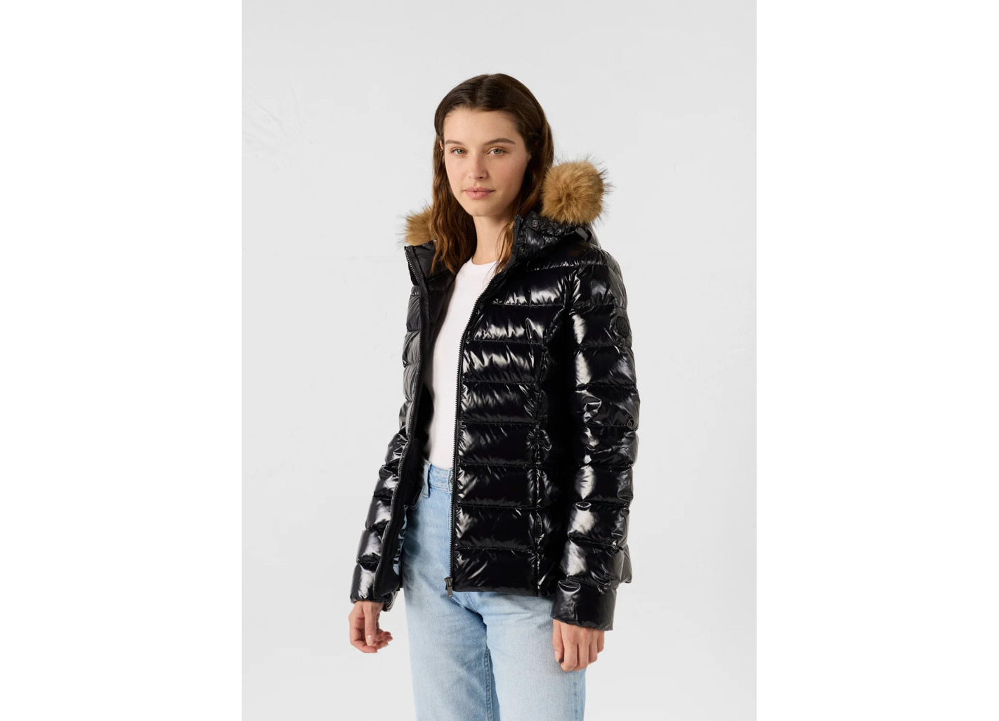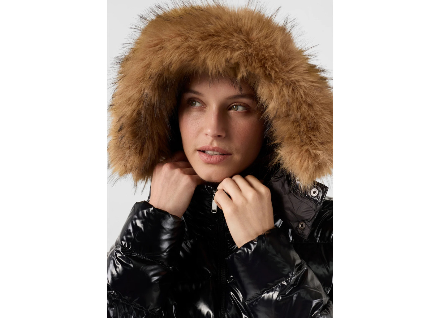 Avec sa coupe ajustée et sa matière brillante iconique, cette doudoune revisite les codes du manteau hivernal avec une vraie touche de sophistication. La capuche bordée de fausse fourrure apporte une note élégante et protectrice, idéale pour affronter le froid avec style. Parfaite sur un jean droit ou un pantalon en maille, elle conjugue confort, féminité et allure urbaine.